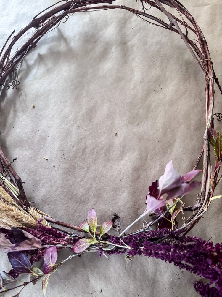 Amaranth is the ultimate drama queen of the garden, and its trailing, colorful plumes were exactly what this simple wreath needed to come to life.