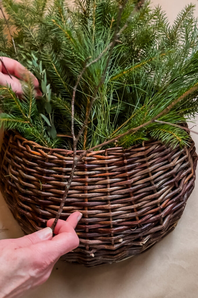 As the basket filled up I trimmed the front pieces of greenery to be smaller to create the layered look.