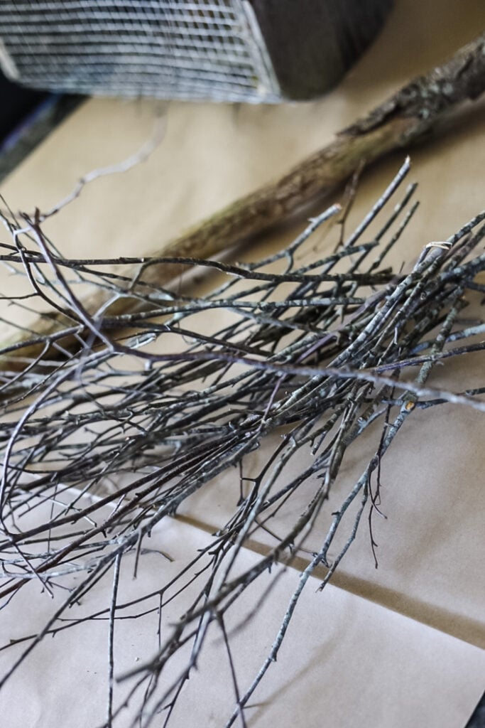 I am in New England so the best twigs to use would be birch. Birch twigs have the perfect wirey look and are thin and flexible.