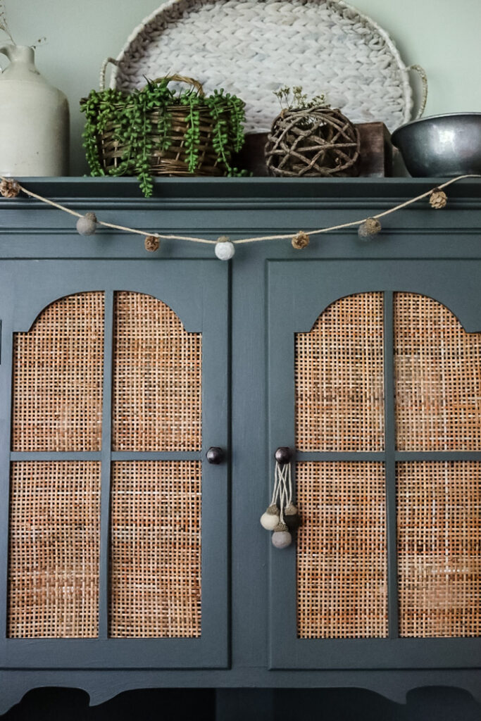 Of course, this would be perfect across a fireplace mantle! If you don’t have a mantle to decorate, then another way to use this is to hang the acorn garland across a cabinet. Like this china hutch in my dining area, it adds the perfect Fall touch to it!
