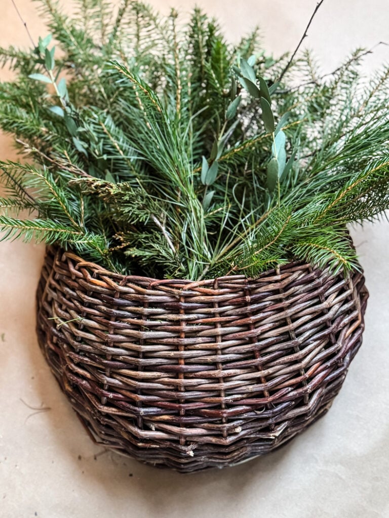 As the basket filled up I trimmed the front pieces of greenery to be smaller to create the layered look.
