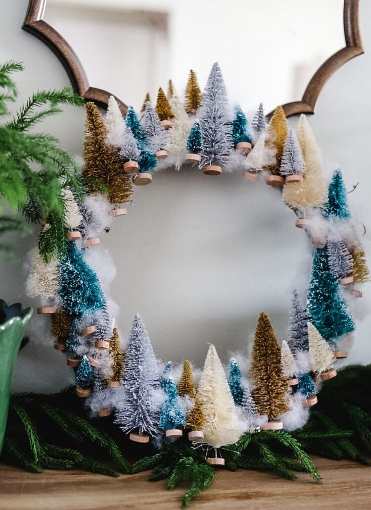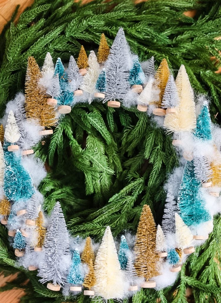 Here’s a better look at the wreath once I had attached all the bottle brush trees to it.