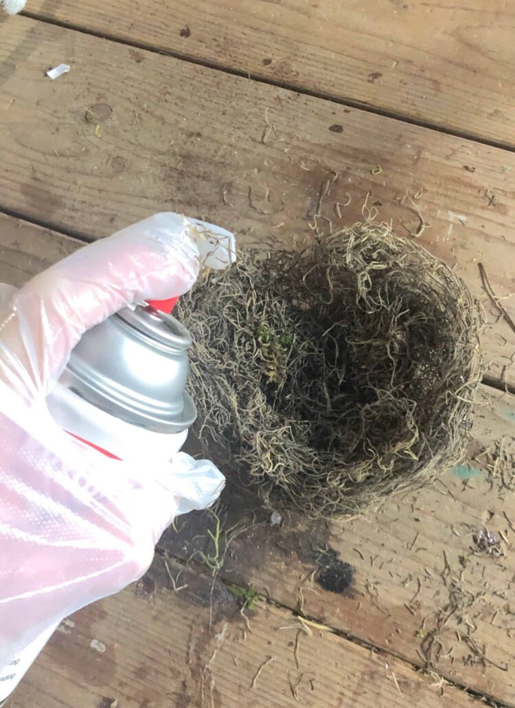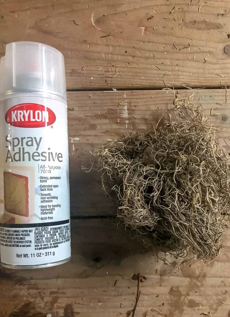 - Step 2: Lightly spray the moss with the adhesive and start shaping the moss into a nest shape.