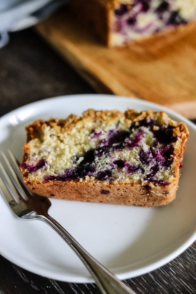 This loaf cake combines the moistness of a classic blueberry loaf with the delightful crunch of a streusel topping.